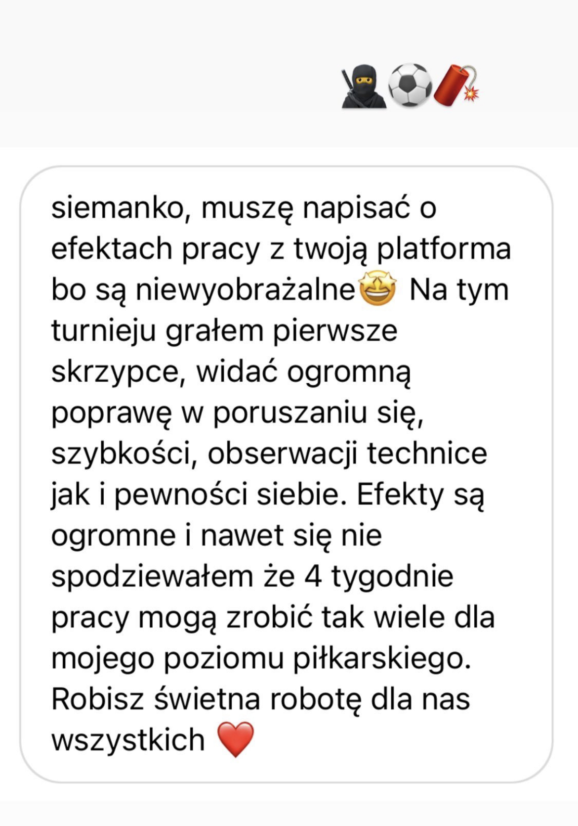 Stworzyłem autorski, unikalny sposób treningu indywidualnego. Wszystko po to, abyś grał w doskonałej synergii między swoją głową, a nogami i byś nigdy nie miał wrażenia, że mogłeś osiągnąć więcej bo zmarnowałeś swój potencjał.
